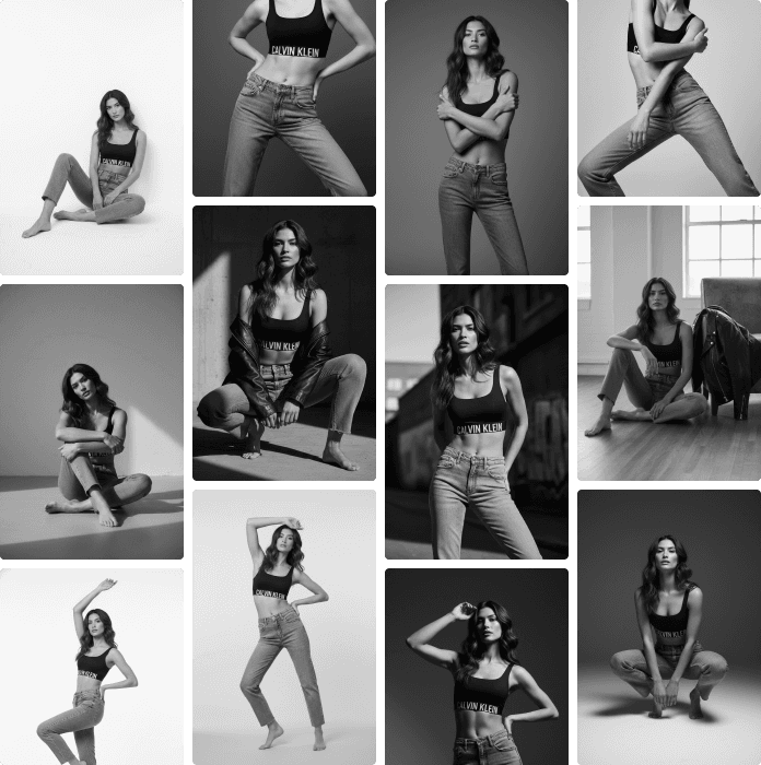 02Concept, generation, retouching, motion. Every variant tuned to your brand and your channels.